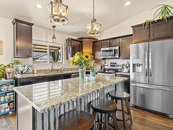 Listed by Jeremy Kahler, KWBH, 605-381-7500. Welcome to 1223 Kodiak Dr- enjoy easy one-level living in this ZERO stair ranch style home! *Perfectly set up for everyday living and entertaining, the open concept living area serves as the heart of this home *Vaulted ceilings, beautiful LVT flooring and great natural light throughout these areas *The corner kitchen is a chef’s dream, offering ample mocha colored cabinetry, beautiful granite countertops and sleek stainless steel appliances *With a dining area and a breakfast island, there’s room for both casual meals or formal dining *Main floor laundry closet in dining room *The master bedroom has trayed ceilings and an ensuite bathroom with walk-in closet *2 additional bedrooms and 1 full bathroom on the other side of the home *Attached 2-car garage is fully finished *Enjoy summer evenings with family and friends, relaxing on the pergola covered Trex deck or host gatherings on the concrete patio *The fully privacy-fenced backyard, with a handy gate for easy access, is beautifully maintained with a sprinkler system and features rock accents and raised garden beds *Gravel parking area next to the garage for added parking- bring your boat or RV *Great curb appeal out front with upgraded siding and a paver pathway that leads you to the covered front stoop with custom metal railing. Located near the BH State-Rapid City campus, and near the neighborhood park- call today!