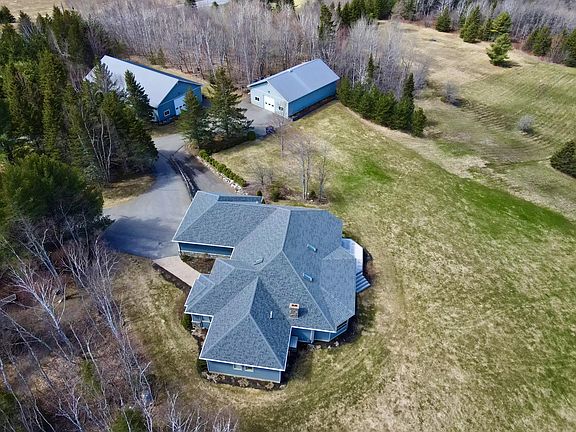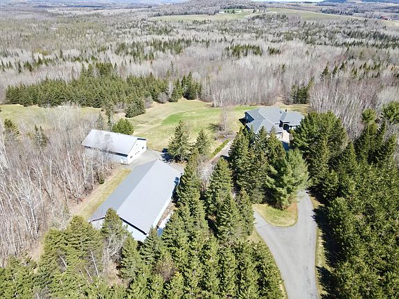 Nestled on 104 acres in a sought after town in Aroostook County is a meticulously maintained custom 4 bedroom home. This 2005 ranch features first floor living with custom cabinets, hardwood floors and walk-in pantry along with a gorgeous sunroom that features floor to ceiling windows to view the scenery in all four seasons. The kitchen features granite countertops, solid cherry custom cabinets and stainless steel appliances. Beautiful stone fireplace is the focal point for the open living concept which combines the dining room, living room and kitchen to make entertaining a breeze. Off of the Primary bedroom and past the walk-in closet you will find a newly renovated luxurious en suite of all marble and quartz with a huge soaking tub to unwind at the end of the day. Completely finished basement with gas fireplace and family area as well as an entrance to a heated lower garage that easily fits three cars and ample space for storage along with another heated three car garage on the main floor. Central air and Radiant heat throughout the home keep the temperature just right during any season. Two oversized fully finished garages, the 45x80 garage is heated, has its own well, has an office and a garage door that can accommodate the tallest motor homes. The 40x60 garage is insulated and completely finished which gives more than ample room for storage. Well landscaped home with rock walls as well as direct access to the ITS snowmobile trail and miles of walking and snowshoe trails.