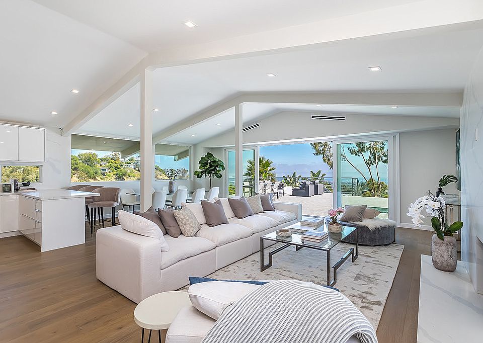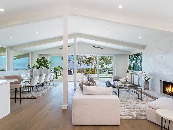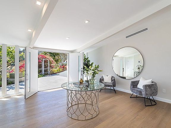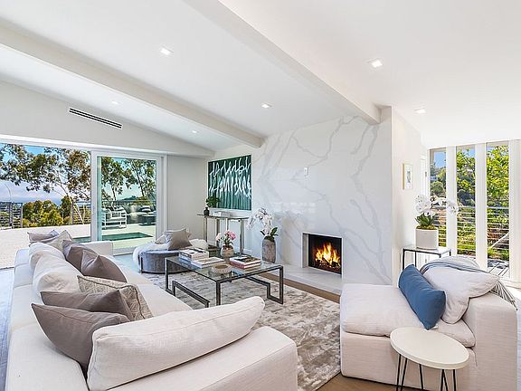 An iconic ocean view Oasis. Surrounded by lush greenery and fruit trees is the setting for this modern estate. With expansive 320-degree views, this hidden retreat allows for total privacy as it is situated behind a gated driveway in one of Brentwood's most desirable enclaves. The home has been beautifully remodeled with vaulted ceilings creating a light-filled living area. Kitchen has Subzero refrigerator and stainless-steel appliances. Indoor/outdoor flow to living/dining areas & to expansive multi-level decks with grounds and hidden wine cellar. The upstairs master suite features views to the ocean, city and verdant canyon, as well as its own outdoor deck. Tigertail is an ultra-private, tranquil escape within minutes of world-class shops, restaurants and entertainment.