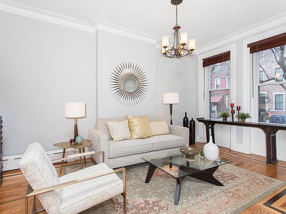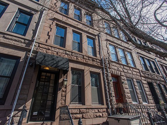 Gorgeously renovated turn-of-the-century, single-family, four-story brownstone in the heart of Hoboken's desirable uptown townhome district. This expansive three-window-wide home has a full four-story extension. It includes four bedrooms, three-and-a-half bathrooms, two living areas, and an abundance of storage. A 675 square foot-private garden in back features bluestone pavers, turf, built-in grill with dedicated gas line, fridge, and a wood-burning pizza oven, making it the perfect space for outdoor entertaining. A restored brownstone facade, charming entry vestibule adorned with stained glass, millwork and plaster moldings, and rebuilt curved staircase/handrail are among the original details featured throughout the house. The parlor level consists of a living room whose centerpiece is a beautiful custom-designed Hearth Cabinet fireplace and mantle, half bath, a large open chef's kitchen, and dining area with oversized Marvin windows and a glass door for access to the backyard garden. The spacious kitchen is lined with white custom cabinetry paired with a bank of restored original cabinets, quartz countertops, a pantry closet, and all luxury appliances including a six-burner Wolf dual-fuel range and hood, a 48" GE Monogram refrigerator, Miele dishwasher, Miele speed oven/microwave combo, and a wine fridge. Upstairs are two large bedrooms, a full bathroom clad with marble tiles, a dual marble vanity, and soaking tub. This floor also has a large, walk-in storage closet and a laundry closet with full size washer/dryer. The top floor has one more massive bedroom plus the master suite, which features a dressing area outfitted with California closets, built-in window seats for extra storage, motorized blinds, and a statuary marble en-suite bathroom including a frameless glass shower and rain showerhead. The second bedroom, currently used as an office, has its own closet and custom built-in wardrobe. A gym/office sits on the lower level of the home, as well as a full-size laundry room with second washer/dryer, a third full bathroom, and a family room with garden access. Other highlights of the home include Nest Wi-Fi climate control with four heating zones and two cooling zones, a house-wide audio system wired for Sonos with eight built-in speaker zones, recessed lighting, and gorgeous hardwood floors throughout. 1223 Park Avenue is conveniently located in uptown Hoboken, only three minutes from Trader Joe's and seven minutes to the 14th Street Ferry Terminal for easy access to New York City. Parking available for rent nearby.
