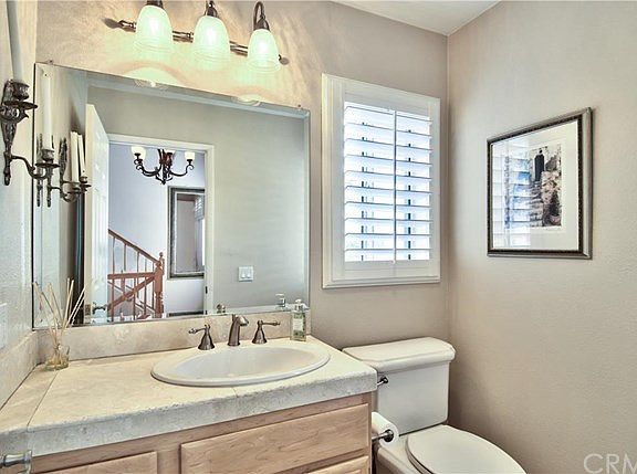 WELCOME HOME! This beautifully upgraded Corona Hills home features upgraded carpeting and designer Travertine flooring throughout the home. The recently upgraded kitchen has granite counters; designer glass back-splash and stainless steel appliances with a beautiful view of the backyard. Downstairs you will find a custom built in entertainment center, powder bathroom with custom Travertine counters and designer chandeliers. Upstairs offers 2 guest bedrooms with plantation shutters complete with ceiling fans. An upgraded full bathroom for your guests also has Travertine counters, plantation shutters and a designer Travertine shower. A large Master Bedroom offers great natural light and a custom closet with built ins, pull out drawers and custom light fixture. The Mater Bath also has Travertine counters, jetted tub & shower. The well-manicured backyard is large enough to entertain and easy to maintain, with a concrete patio complete with patio covering and has direct access to your 2 car garage! This is one you will have to see to believe!