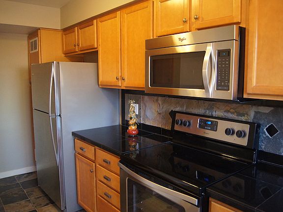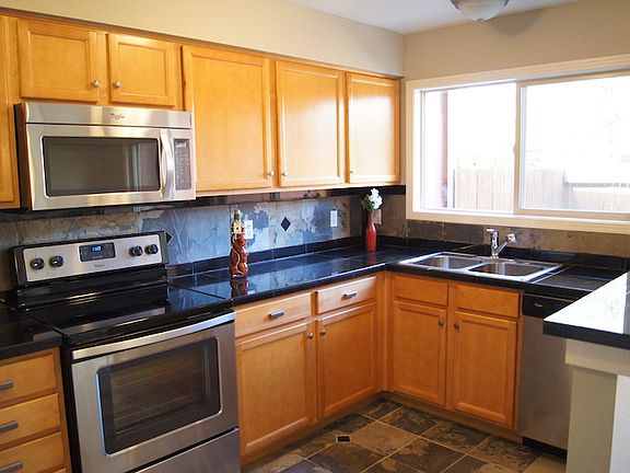 While on the phone, a friend from FL said "There are no townhouses w/an attached 2 car garage anywhere!" I said "I have one right now....a 1258 sq ft, 2 BR/2 Bath completely remodeled townhouse w/large windows framing tall mature trees, large living room w/a cozy gas fireplace & great dining room. The updated kitchen features granite counter tops, SS appls, custom back splash/tile floor & window to back patio! Nice bathrooms w/granite counter tops & tile accents. Huge master BR w/walk-in cl!" My friends says " OK I get it" I said "I'm not done! Laundry next to bedrooms! New AC unit! Attached 2 car garage & lots of street parking! Fenced in & landscaped back patio w/red & pink roses! Peaceful meadow & trees behind home. Friendly neighbors! Walk to the community pool! Adjacent to greenbelt! Minutes to University Hospital, Buckley AFB, light rail, I-225, & Town Center Mall." Finally my friend says "Dang I wish I lived in CO!" I just smiled, "Yes, this is one great home!"