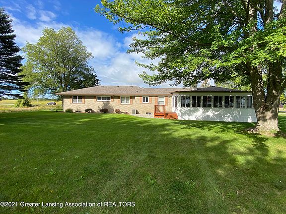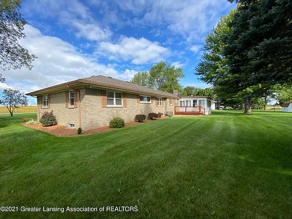 Quality & comfort are foremost in this lovely 3 bedroom home. This sturdy & attractive, brick ranch is located on a pleasant, tree shaded, half acre! Views of sunrises & sunsets from East & West windows are outstanding! A spacious, 4 seasons room has a wall of windows to take in the East views! Just bring your coffee & relax! Formal, brick front, wood burning fireplace in the living room & a cozy wood burner insert located just off the kitchen! One and half baths, plus a work shop shower in the lower level! Washer & dryer hookups on the main level & lower. Two car attached garage with loads of storage! Newer concrete drive & garage apron! Newer storage shed, in excellent condition. Open deck at the rear of home, for relaxing on cool, summer evenings. Spacious lawn with beautiful shade trees. This home is move in ready & well cared for! Easy distance from downtown St Johns & community activities!