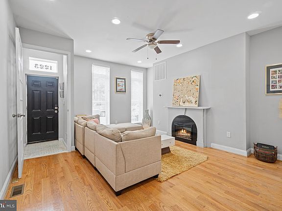 Welcome to this renovated four-story Colonial-style brick townhome in Johnston Square. Featuring 4 bedrooms and 4 bathrooms, this spacious home blends historic charm with modern updates. Original hardwood floors flow throughout, complemented by an updated kitchen with stainless steel appliances, granite countertops, and chestnut cabinetry. The living room centers around a cozy wood-burning fireplace, while the private 4th-floor suite and convenient upper-level laundry add everyday comfort. The fully finished basement offers flexible space for entertaining, a home office, or media room, with additional washer/dryer hookups. Enjoy two outdoor spaces, an upper deck and backyard balcony plus abundant storage. Located near Johnston Square Park, Johns Hopkins University, and Downtown Baltimore, this home is both a comfortable residence and a smart investment in a growing community.