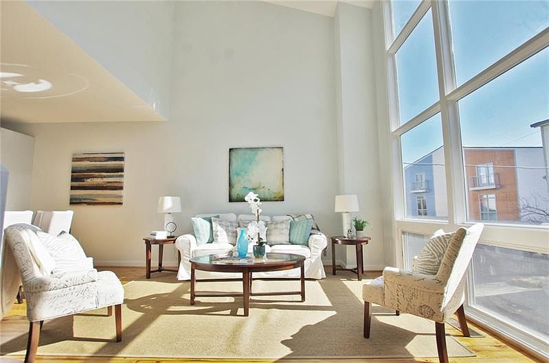 This 3-story modern townhome on the HOT Upper Westside is not to be missed as every inch of this home has been restored and refreshed to newness. Freshly painted throughout with refinished hardwoods on the main floor and new carpet in the bedroom. Enjoy natural light streaming into the great room with 20 ft ceilings. Kitchen features freshly painted cabinetry, stainless appliances, stone countertops, large kitchen island, and overlooks bright dining/living areas, and the refinished deck. Oversized master bedroom with generous european style master bath includes laundry closet with convenient wash/dryer hookup.Brand new water heater. Private/fenced backyard. 2-car tandem garage. M West is a gated community with a pool, fitness center, clubroom, pet walk and nature walk. Stellar intown location near I-75, Top Golf, Star Provisions, shopping, Beltline expansion, and Bellwood Quarry.