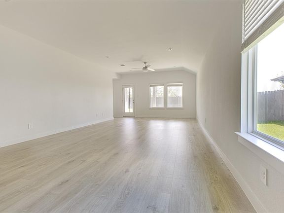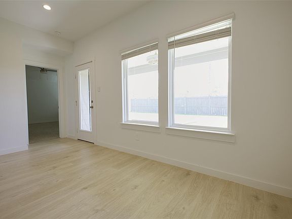 The primary suite impresses with a vaulted ceiling, dual vanities, a private water closet, and a generous walk-in closet. The rear covered patio, accessible from the family room, provides an ideal space for relaxation and entertaining. Throughout the home, you’ll find durable Nimbus Oak luxury vinyl plank flooring and plush Silver Dollar carpeting.