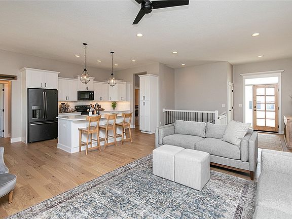 Gorgeous one story with finished lower level in Norwalk! With 4BRs, 3.5 BAs & 3 car attached garage, this open floor plan has vaulted living room ceiling, gas stone fireplace & upgraded hardwood flooring throughout kitchen, living room & dining. Kitchen boasts quartz countertops, large island, white cabinetry with soft close drawers, tile backsplash & slate appliances included. Perfect layout with 2BRs on one end of the home, sharing a Jack-N-Jill bath & the primary bedroom suite on the opposite side of the home with a private bath w/ double vanity, tile shower, soaking tub & large walk-in closet that connects to laundry room. Almost 1,200 SF finished in the lower level includes an oversized family room w/ wet bar, full bath & 2 storage rooms. Other features include: custom blinds included, spacious laundry room with shelving and washer/dryer stay, drop zone with cubbies, gorgeous glass front entry door, 1/2 bath on main level for guests, epoxy floors in garage, & partial tax abatement still on home. Exterior is professionally landscaped, fenced back yard and 24x28 patio (partially covered). So much space and amazing touches in this home!