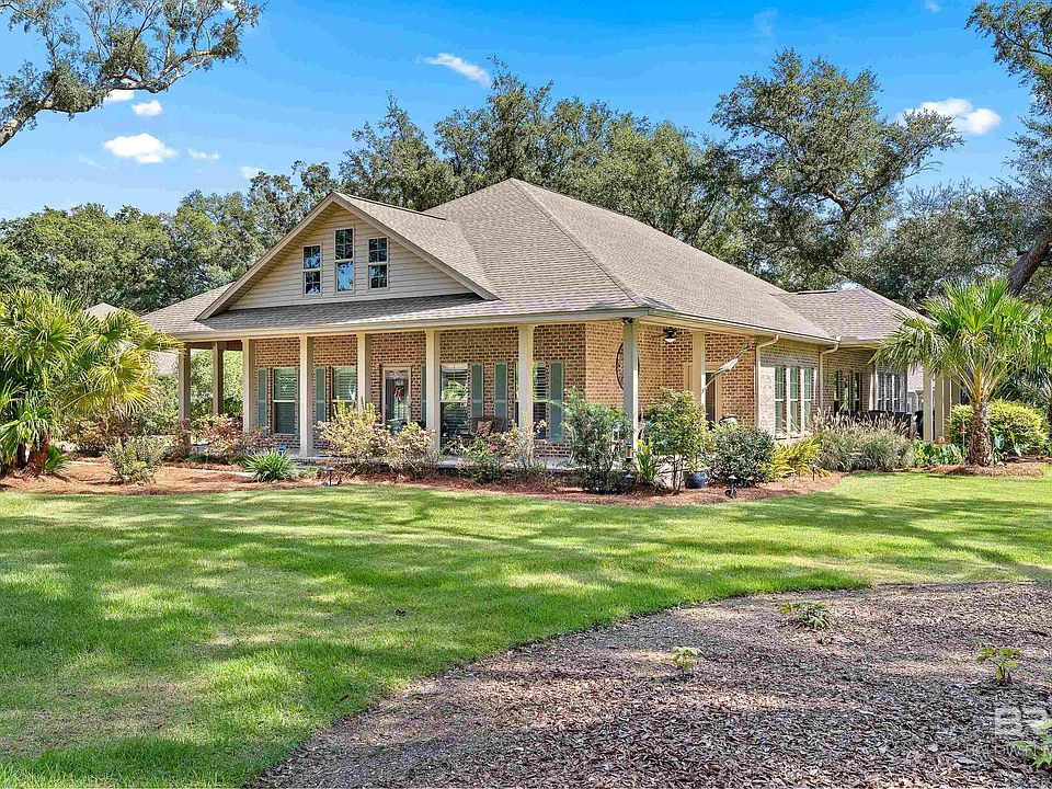 Welcome to Perdido Bay Oaks in Lillian, AL! This peaceful waterfront community is conveniently located near the Lillian Boat Launch and a short drive Florida, providing easy access to shopping, restaurants, and the Navy Base in Pensacola. Perdido Bay Oaks offers its residents a community pier where you can experience panoramic views of the bay. Walk or take your golf cart down to the water to relax and take in the beauty if this area, which is a perk of living in this community. This custom-built home is gold fortified and sits on over half an acre on a corner lot. Not only can you see the bay from the home, but it also has a ton of upgrades. It all begins with the impeccably landscaped yard! Zoysia grass, Azaleas, Camellias, Ginger, fruit trees and palms create a thoughtfully designed landscape that enhances the home's curb appeal. Step inside to find 10’ ceilings, granite countertops, crown molding, new plantation shutters throughout, freshly painted interior, new carpet in all bedrooms, and custom light fixtures. The kitchen is equipped with stainless appliances to include a 5-burner gas range and a large island. The private primary suite offers tray ceilings and glimpses of the bay, while the luxurious primary bath features double vanities and a large custom tiled shower. For added convenience, the oversized walk-in closet connects directly to the spacious laundry room – a thoughtful and practical touch! The 800 sq ft garage has its own HVAC, cabinets for storage, and a tv hookup. There is also a whole house generator with a 250-gallon buried propane tank, whole house air purification system and dehumidifier system, an irrigation system with its own well, landscape lighting, gutters, hurricane window coverings, and an electric dog fence around the entire property. With all of its incredible features, this home truly stands out as a unique opportunity to enjoy comfort, convenience, and the serene waterfront lifestyle that Perdido Bay Oaks has to offer. Buyer to v
