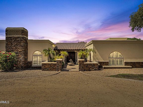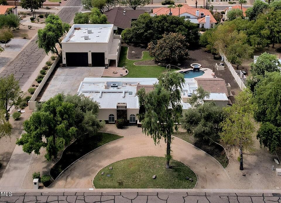 Calling all CAR ENTHUSIASTS, this home is a true ''CAR COLLECTOR'S DREAM'' with a detached 2400 square-foot RV garage with 14 foot doors to accommodate a motorhome and additional cars. The garage even has a loft and its own bathroom for added convenience. This luxurious 4-bedroom, 4.5-bathroom ranch-style home in Scottsdale, offering 3,397 sq. ft. of beautifully designed living space. With a freshly painted exterior and a timeless ranch-style architecture, this property offers both elegance and functionality. Step outside to the enormous yard, where you'll find a sparkling pool, perfect for Arizona summers. The backyard offers plenty of space for gatherings and outdoor fun. Located in a desirable Scottsdale community, this home offers the perfect blend of luxury living and convenience. PRE-INSPECTION W/ MOST REPAIRS ALREADY COMPLETED. Don't miss your opportunity to own this one-of-a-kind property!