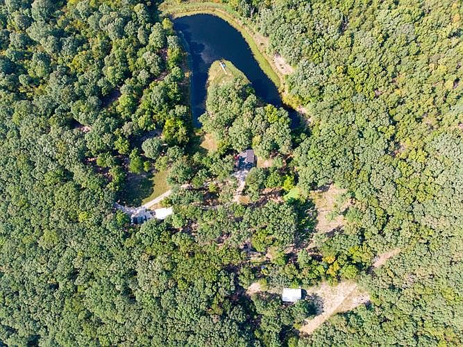 All brick, totally updated 3 bedroom home on private lake 10 acres. Detached 30 X 40 shop with wood stove and 4 stall horse barn and lot. House has 6'' walls. Chicken coop, well water. Chimney has been updated and is warranted. Roof five years old. 30 additional acres available and listed separately.