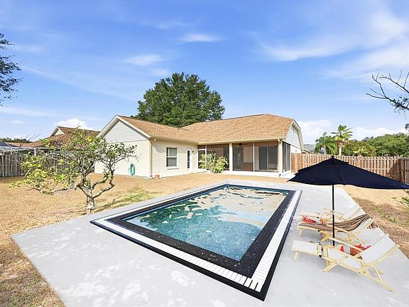 One or more photo(s) has been virtually staged. Welcome to this never offered on market Riverglen home built by Centex. This large 3-bedroom, 2-bath home sits on an oversized lot which can easily accommodate a large pool. From the moment you walk in, the home feels bright and open with tall ceilings. The kitchen flows right into the living and dining spaces, creating a natural spot for family time, dinner with friends, or simply relaxing after a long day. The primary suite is tucked away from the rest of the home with a large ensuite bathroom. You’ll find a large walk-in closet and an orignal bathroom with a tub, dual sinks, and a separate walk-in shower. Two additional bedrooms and a full bath sit on the other side of the home, offering privacy for guests or a home office. New roof was installed in 2022 by Wayne Gonzalez Roofing with a 10 year no leak roof labor on shingle system warranty. New 6" seemless gutters with all new downspouts were installed. Step outside to the screened-in back patio with pavers stone flooring for your morning coffee, evening wine, or listening to the birds. Partially new fence was installed in 2022 as well. Minutes from shops, dining, and top-rated schools this well priced home with space, privacy is ready for your upgrades, and personal touches that will truly sets it apart, this is the one you don’t want to miss.
