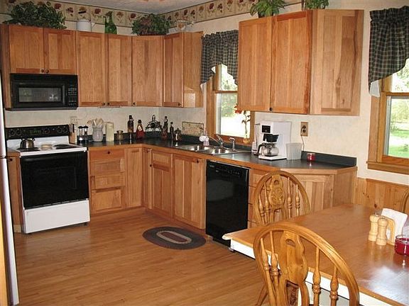 Beautiful country home on 9.1 wooded acres. Newly remodeled kitchen and bathrooms, hw floors, large living room, full basement ready for an office. 1/4 mile off of Ct Rd 3 / 110th St. Quiet, secluded, well-kept, and comfortable. Hw flrs under carpet upst