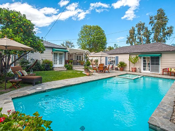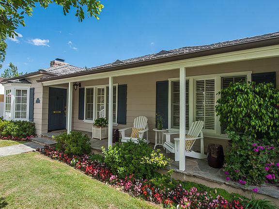 Timeless East Coast Traditional with detached bonus/guest suite is situated in a remarkable location within prime Valley Village and award winning Colfax Charter School District. Lushly landscaped yard, salt water pool with waterfall and spa are secluded behind a fully fenced and gated drive for maximum privacy. Spacious living room, dining and family rooms flow together perfectly with an expansive chefs kitchen featuring Viking appliances, breakfast bar and french doors opening to a backyard oasis perfect for gathering with family and friends. Previously a 4 bedroom home now revised to 3 en-suite bedrooms including a Master with large walk-in closet and french doors to backyard. The enchanting separate bonus/guest suite is replete with pitched ceilings, 3/4 bath and adjacent to the pool/spa. The oversized garage has extensive storage and plenty of room for prized autos......and yes, you too will want to play in the front yard treehouse!