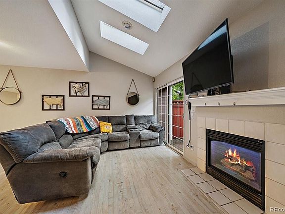 Come see this beautiful townhome style condo in a quiet community. 3 levels of well appointed living space. Granite countertops, a modernized kitchen that has a breakfast bar or room for a dinning table. Open concept main floors, vaulted ceiling, skylights and a glass fireplace. A sliding glass door opens out to the private fenced deck. Private primary retreat take up the entire 2nd floor with a en suite bathroom and a walk in closet. Finished basement host the laundry room with included washer and dryer. A spacious conforming bedroom complete with an en suite bathroom. Great location blocks away from Willowbrook park, dinging, shopping and I-25.