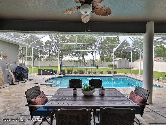 THIS IS THE ONE! The Perfect Home that shows pride in ownership. Meticulously maintained, This beautiful POOL home features 3 bedrooms, 2 full bathrooms, and a separate MAN CAVE that is located just outside the laundry room and garage. There is not one thing needed except your personal items. The open floor plan that displays archways, shelved ceilings, and a tray ceiling in the living room will not disappoint you. From the moment you enter the home through the large double doorway your view will take you all the way to the well-manicured backyard, the only thing separating you is the slick paved screened-in patio with a crystal clear glistening pool. What's new you ask? The roof, windows, window treatments, kitchen cabinets, pool bath upgraded, pool vacuum, and patio pavers, just to name a few. Come walk through this stunning master suite with two walk-in closets, a walk-in tiled shower, and a soaker tub for those relaxing evenings. Step out onto the patio and take a dip in the pool right out of your master suite sliders. The other two bedrooms are located on the opposite side of the living room. House includes a central vacuum, hurricane screens, automatic pool filter to fill the pool when you are away on vacation. Enjoy entertaining your friends and family on the covered pool deck while listening to your Sono sound system inside and out. Please shower off before entering the pool in your own outside shower. The half-acre property is fenced in around the back where there are no rear neighbors, just a ranch. Memories are waiting to be made with you and your family so come take a tour of this stunning home and make it yours TODAY!!