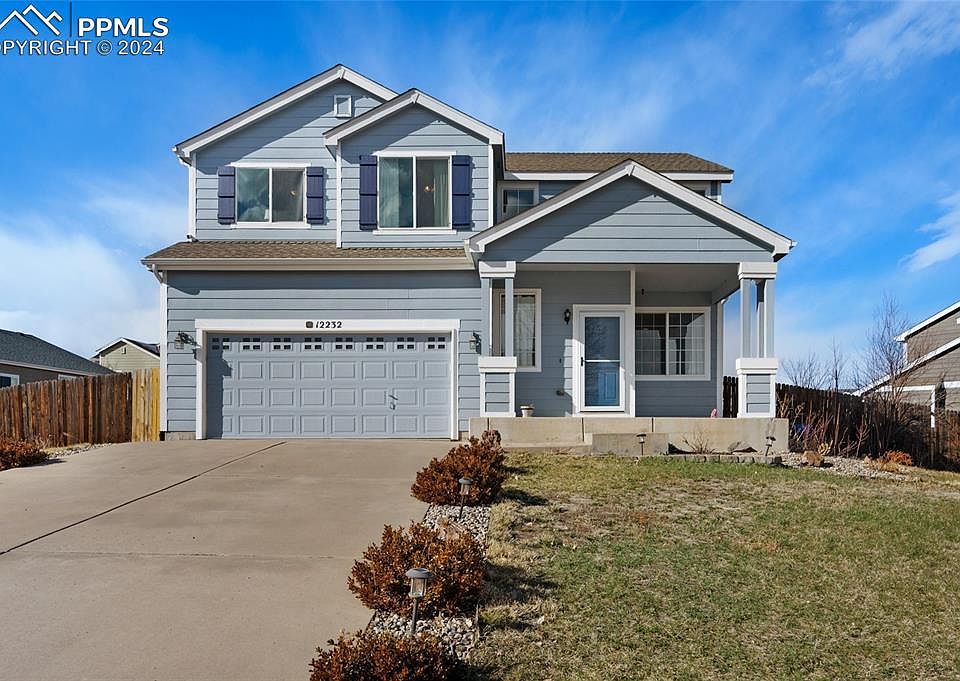 Welcome to this meticulously maintained charmer nestled in Woodmen Hills! Step onto the classic covered front porch and feel instantly at home. This property boasts a large yard, both front and back, providing ample space for outdoor activities and relaxation. Enter into the bright and cheery floor plan featuring a great neutral color palette throughout. The main level offers a cozy living room with a two-sided fireplace shared with the family room, both adorned with tile floors for easy maintenance. The open dining area seamlessly flows into the kitchen, which is equipped with stainless steel appliances and an abundance of warm wood cabinetry, providing both style and functionality. A sliding door off the dining area leads to the back patio, perfect for entertaining or enjoying a morning coffee. Upstairs, discover three generously sized bedrooms, each adorned with laminate wood floors, offering comfort and style. The full unfinished basement provides excellent potential for customization to suit your needs. Notable updates include new front bedroom windows (one in each bedroom, a water heater replaced in 2020, and a furnace replaced in 2021, ensuring peace of mind for years to come. Conveniently located close to a rec center with an indoor pool, this home offers an active lifestyle with lots of walking paths throughout the neighborhood. Antler Creek golf course is just steps away, and the property is situated near plenty of shopping options, with more on the horizon. With its move-in-ready condition and desirable amenities, this Woodmen Hills gem presents an opportunity not to be missed! Schedule your showing today and envision the lifestyle awaiting you in this delightful abode.