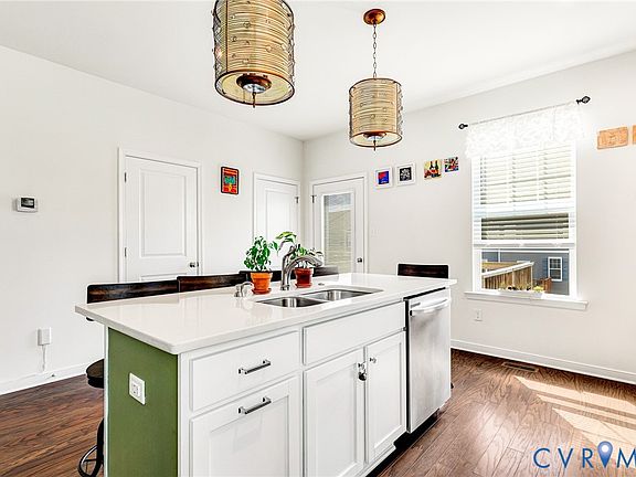 Come see this Turnkey, Like New (2020), Move-In Ready, Original Owner End Unit Townhouse in Hartford Hill Townes. ALL Bedrooms have their own bathroom and a walk-in closet - basically 3 primary suites!! Conveniently located near Shopping/Restaurants - Wegman's, 7 Brew Coffee, Sam's Club, Mission BBQ, Blaze Pizza, Chesterfield Towne Center, Westchester Commons. Close for commuters to 288 or Powhite Pkwy. Only 5 years old, this extremely well cared for townhouse offers updated lighting fixtures, 1st Floor has a 1-car garage, but an extra wide driveway that can accommodate 2 cars side by side. There is a 1st floor bedroom with a walk-in closet and full bath with tile floors and tile shower walls. It also features a door to the 10x10 concrete patio. 2nd floor features a stunning great, open room with wood floors. Enjoy tons of natural light since this is an end unit allowing extra windows along the side. The modern kitchen has a large island w/ granite countertops, s/s sink, dishwasher, ceramic tile backsplash, 42" top cabinets & tons of storage. All kitchen appliances are Samsung stainless steel. Step out to your 10'x10' deck from this area to enjoy grilling out, having your morning coffee or enjoying a sunset cocktail! The kitchen is open to the family room and there is plenty of space for a dining table area between the kitchen and family room. A half bath & pantry round out the 2nd floor. 3rd floor brings you to the laundry room, 1 over-sized bedroom with a walk-in closet & a full bath with tile floor & tile shower walls. Primary suite has a larger bathroom with 36" high dual vanities, tile floor & tile shower walls. Large 9'5"x5'2" walk-in closet. Please remove shoes or wear coverings provided during showings. No sign at property. Schedule your showing with your Realtor today!
