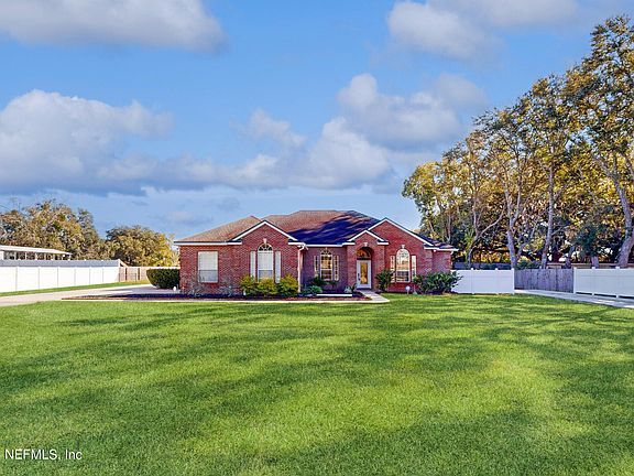 one-acre property. Dive into relaxation in the pristine saltwater pool, enclosed within a screened oasis for added comfort. With 10-foot ceilings, this residence provides an open and spacious atmosphere. The property features remote-controlled gates, ensuring security and privacy. Located just minutes from the airport and 4 miles from the vibrant River City Marketplace, you'll enjoy convenient access to amenities and entertainment. Positioned in a developing area and only 2 miles from Highway 295, this home offers a perfect blend of tranquility and accessibility. The AC was upgraded in 2019, enhancing energy efficiency. Don't miss the opportunity to make this meticulously crafted home yours!