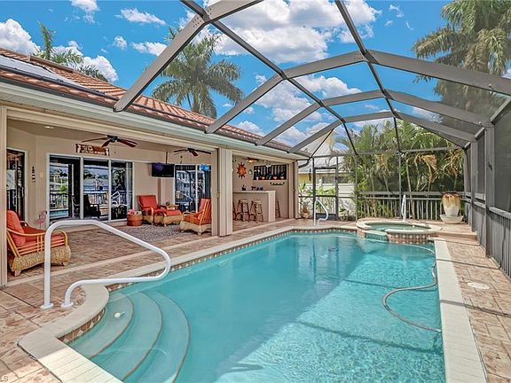 This well maintained 2007 built home has everything you're looking for in a Gulf access pool home in Matlacha Isles. Matlacha Isles is known for its great boating access and friendly, tropical vibe. This LCEC Energy Star home has a 1 year old metal tile roof w/ 50 yr warranty, impact windows, and accordion storm shutter to close off the lanai (you don't have to move furniture). City water and sewer in and paid! Stepping in the front door you're welcomed into the great room, with it's high ceilings and view of the spa, pool and canal. The custom open kitchen features granite counters and plenty of cabinets for storage. Made for entertaining, this kitchen overlooks the great room and into the lanai and pool area. Master Suite has walk in closets, soaking tub and walk in shower. The large under-truss lanai is the perfect place to enjoy the weather next to the pool, it even has a wet bar. The heated salt water pool has an extended lanai area for sunning and entertaining. There is a 14k boat lift and captain's walk with a new beige boat canopy on the 110 ft wide direct access canal. Low maintenance yard w/ self pruning palm trees and shell ground cover, concrete curbing, and irrigation.