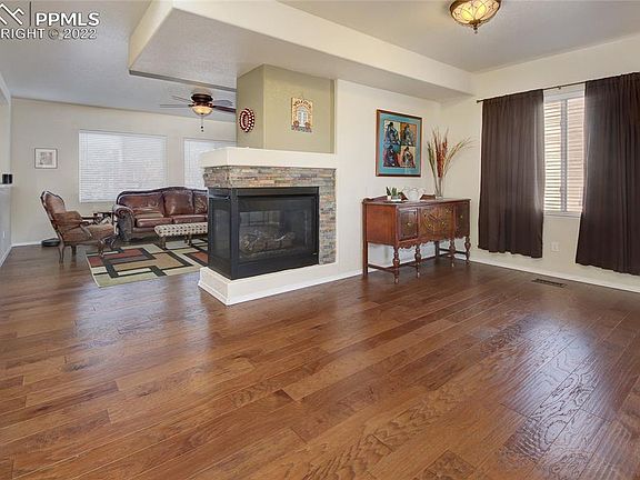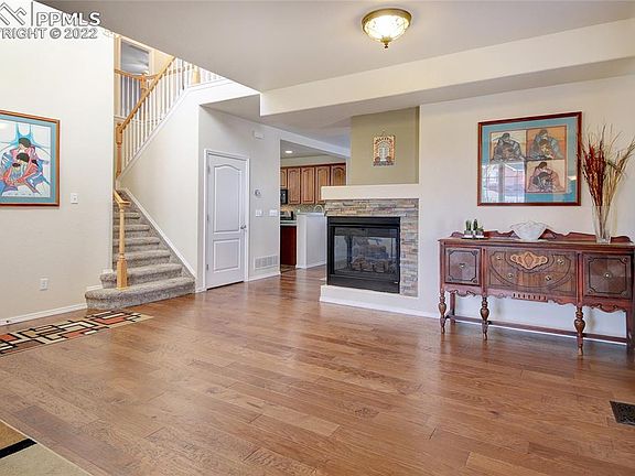Welcome home to Meridian Ranch and this beautiful 2-story home. The home's entry opens with hardwood floors to a SPACIOUS, OPEN floor plan that features a large kitchen. The kitchen has upgraded cabinets, a large center island that is wonderful for food prep. The Kitchen flows effortlessly into the living room that features a cozy 3- sided gas-burning fireplace. On the upper level are 4 bedrooms and 2 full bathrooms. The main bedroom suite has French doors and an attached bathroom that includes a large garden soaking tub a separate standing shower and walk-in closet. The open and unfinished basement is prepared for any transition. A home office, game room, theater room, play area, extra bedroom w/bathroom, or exercise room. Relax in the shade of the covered front porch or on the back patio with family and friends. Fully landscaped, AC, ceiling fans, water filter, humidifier, and more. It's a short walk to the neighborhood 42,000-square-foot rec center. Get fit while having fun in the recreation center where you’ll find indoor basketball courts, a gym and workout facility, and an indoor and outdoor pool. Take a stroll through parks and playgrounds connected by miles of walking trails then relax with a round of golf at Antler Creek Golf Course. Close to schools and shopping. Enjoy the Colorado lifestyle and reach out to your real estate agent for more information and a private tour. This gorgeous move-in ready gem is just waiting for you to call it home!