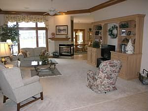 Well designed villa construced by builder for personal home. Loads of storage, sunroom overlooking the pond and generous workshop area in the 3rd bay of the garage are just a few of the amenities in this gracious home. Elegant front door with leaded glass inset and sidelights, generously sized ceramic entry with coat closet plus very large storage closet. Ample sized living room features triple windows w/transoms and 3-M sun film overlooking the pond and a built-in entertainment center. Famil...