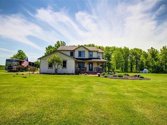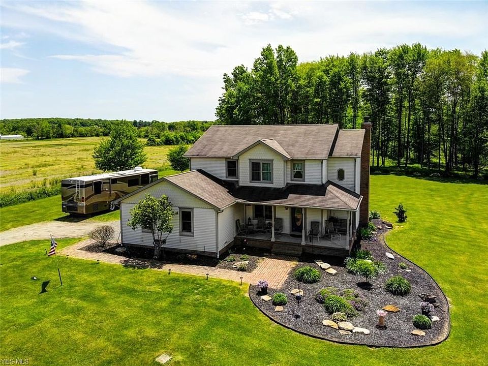 Welcome Home to this two story colonial style home that offers over 2000 sq. ft. of living space on just under 2 acres in Western Reserve School District. As you walk through the front door you instantly can feel at home. Greeted with wide plank wood flooring throughout the main floor. Enjoy the rustic feel of farm house charm with hard wood trims from Baird Brothers, including beautiful hard wood staircase, beautiful crown molding, and antique custom fireplace mantel. Eat in kitchen with large windows and all new stainless steel appliances. Enjoy the views of the back yard from the enclosed four season room. The upstairs offers a loft area for play area or home office, three bedrooms including master bedroom and master bath. The basement has extra block ceiling height, and walkout door to garage, with plumbing for bathroom in place. Enjoy your morning coffee on the front porch, and just sit and enjoy the peacefulness of the country. This home is awaiting it new owners, call today for a private showing.