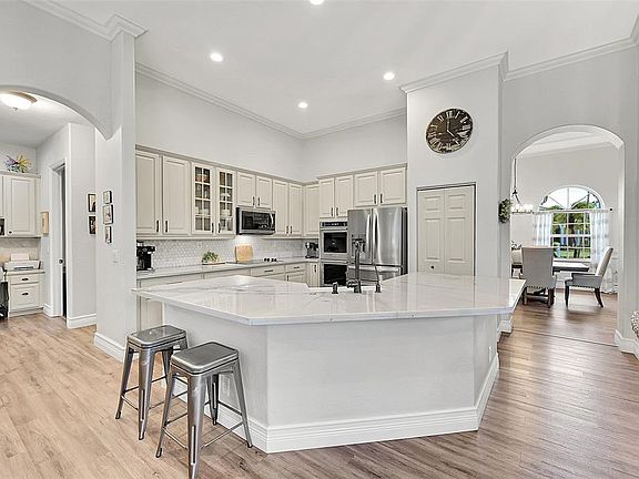 This Exquisite waterfront pool home, a true sanctuary of luxury, nestled within the esteemed Wyndham Lakes gated community Of Bay Pointe. This meticulously remodeled residence boasts 4/2, designed w/a desirable triple split floor plan that optimizes functionality. Every detail has been thoughtfully curated, from all-impact windows that invite abundant natural light to luxury vinyl flooring that lends a sophisticated aesthetic. The primary suite serves as a retreat, featuring walk-in closets & a lavish bathroom that embodies modern elegance. At the heart of the home lies a stunning open-concept kitchen, adorned with quartz countertops & state-of-the-art appliances, ideal for culinary enthusiasts. Outdoor entertaining flourishes w/a spacious grill area, framed by the serene waterfront view.