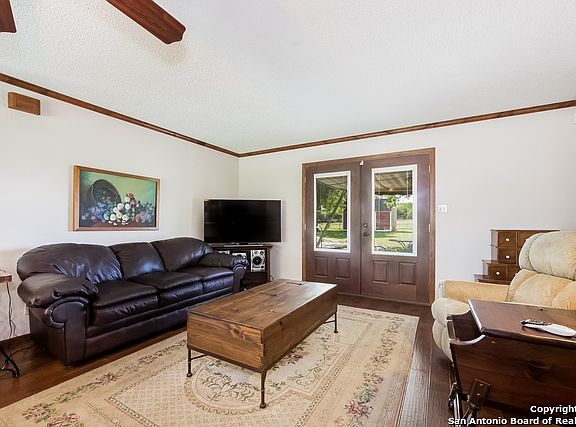 Beautiful one story ranch style home on a fully fenced acre lot with electronic gate/opener. Wood flooring in the spacious family room and dining room. Kitchen with a bright and airy breakfast nook and plenty of cabinets. Additional living area with crown molding and French doors leading to the backyard. Covered patio looks out onto the inground, heated pool with waterfall and separate spa. Matures trees and storage shed. Solar water heater. Sprinker system, central vacuum and new HVAC. 3 car garage.