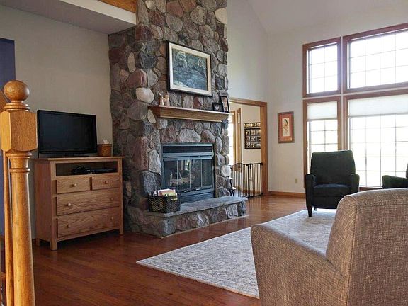 Lovely and scenic home on the 14th hole at Autumn Ridge. Spacious and open 2-story with 3,434 total finished Sq-Ft: 2,249 Sq-Ft above grade and 1,185 finished Sq-Ft in the basement. There is also a sought-after 264 Sq-Ft of unfinished storage space in the basement. The master bedroom is conveniently located on the main floor and the 3 additional bedrooms are upstairs. All bedrooms have walk-in closets. There is a full bath on each level with a half bath for guests on the main floor; 3.5 baths total. The finished daylight basement has a family room, rec room, built-in bar, den, workout room. Additional home features include a garage utility sink, 2 Fireplaces, a big 3-season room with a gas line plumbed for a future heater or fireplace, a 3-car garage that is really 4-cars big with a whopping 878 Sq-Ft of space, underground invisible dog fence with collars, 2 recently replaced water heaters, central vacuum, commercial grade engineered hardwood floors installed 2016, exterior painted in 2016, new roof in 2015, new AC in 2014, new water softener in 2013, 2 new sump pumps in 2017, granite counter tops installed in 2012, all light fixtures replaced in 2014. $660/year association dues include swimming pool (life guard on duty), tennis, club house, trash and recycling. Autumn Ridge Golf Course and the restaurant are open to the public and they offer deeply discounted golf membership rates to neighborhood residents.