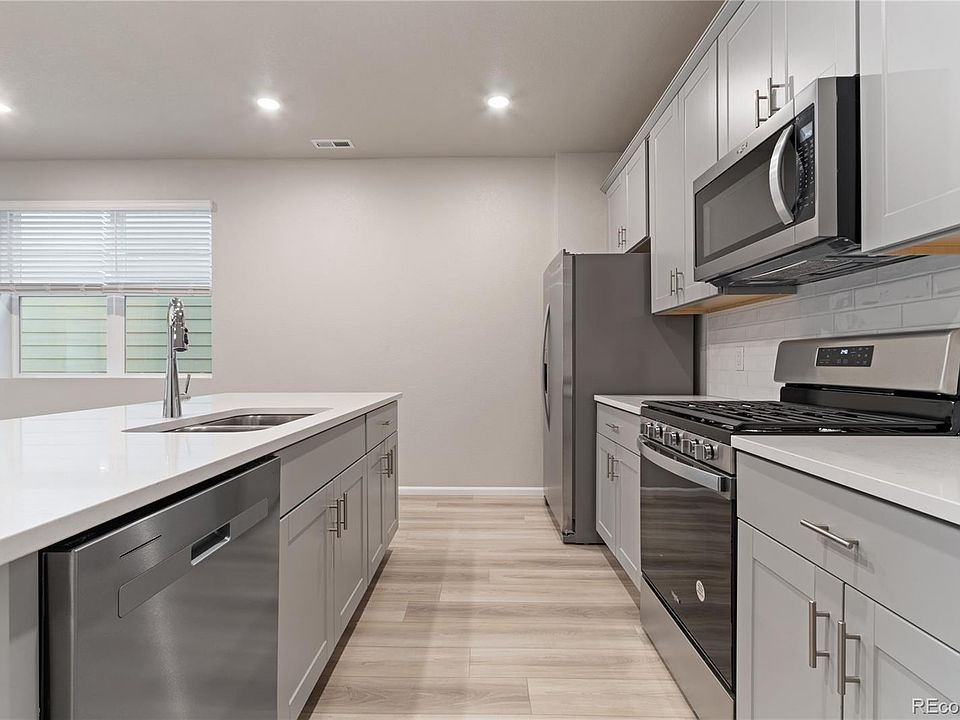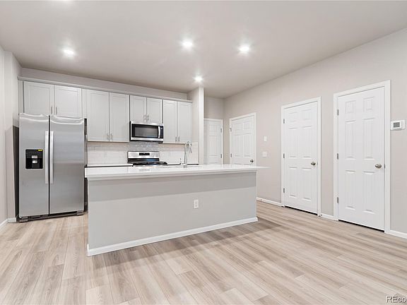 Brand new, energy-efficient home available NOW! Washer, dryer, fridge, blinds included. This end-unit townhome boasts modern living with a traditional exterior. Outfitted with gorgeous grey cabinetry, subway backsplash in the kitchen, quartz countertops, and luxurious vinyl plank flooring throughout the main. Now selling from our model homes. Located in Northglenn just a short distance from parks, shopping, dining, and entertainment. Meet friends for dinner downtown or simplify your commute to work with easy access to I-25 and the nearby lightrail station. Groundbreaking energy efficiency is also built seamlessly into every home in this community so you can spend less on utility bills and more on the things that matter most.* Each of our homes is built with innovative, energy-efficient features designed to help you enjoy more savings, better health, real comfort and peace of mind. Photos are a Builder home of same floorplan.