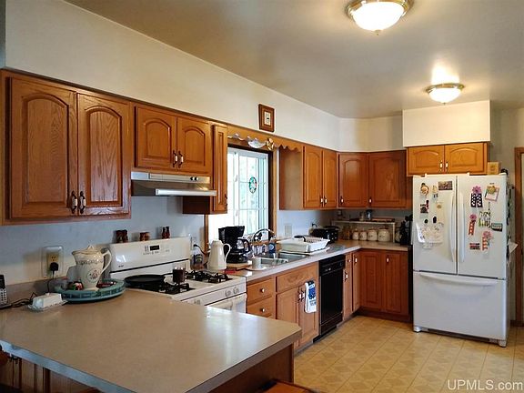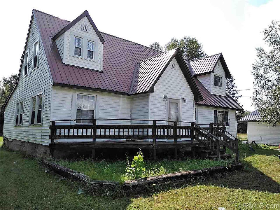 Beautifully wooded acreage with this four bedroom home. The kitchen is spacious & has oak cabinetry, lots of counter space, and a dining area that has a patio door to the huge covered back porch that overlooks the yard. There's also a more formal dining area at the end of the large family room. The living room and family room are both on the main floor but at opposite ends of the house. There's a main floor bedroom and the other three are upstairs and two have charming dormer windows and one has barnwood on two walls. The vinyl siding and metal roof help with low maintenance. The two car garage is 28x28, the 1 car garage is 12x22 and is in need of some work. The former barn/garage is 44x63 and has a dirt floor. The driveway is circular and the yard has red maple and apple trees, plus lilacs. This is country living at its finest.
