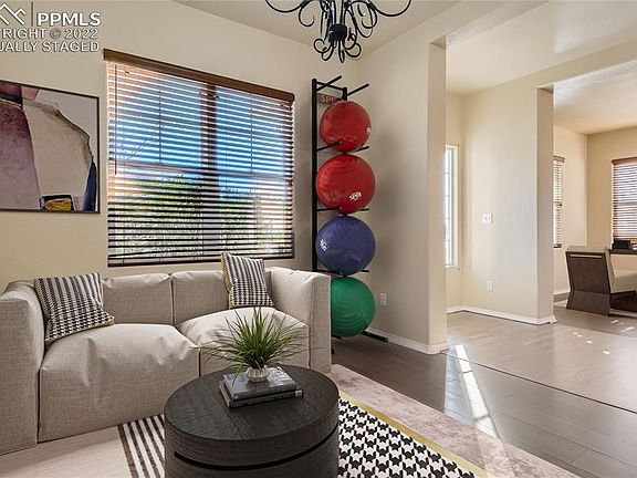 Welcome to this beautifully maintained 4 bedroom, 4 bathroom home located in the prestigious golf course community of Meridian Ranch. This is John Laing Homes' "Legend" floor plan offering nearly 3,000 sqft! Some of the features included are air conditioning, whole house surround sound, hardwood floors and custom butcher block kitchen island. On the main level is a formal dining room, large living room and family room with gas fireplace, and a flex room that could be used as an office study, craft room, or gym, totally up to you! The upper level has the main bedroom and two additional nice-sized bedrooms, along with the conveniently located laundry and loft. The loft area has a fun work station and professionally finished built in shelving. The main bedroom has an attached private bath and walk-in closets. There's a huge, 1000+ sqft fully finished basement with the 4th bedroom, full bathroom, and recreation room perfect for family movie nights. Fully landscaped front and back yards, garden area, and Pergola covered patio are just some of the exterior features. This home offers plenty of living space, an open and spacious feel with plenty of natural light. Meridian Ranch’s recreation center has fitness and pools. This home and community has it all!