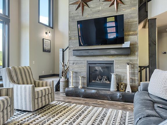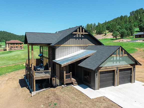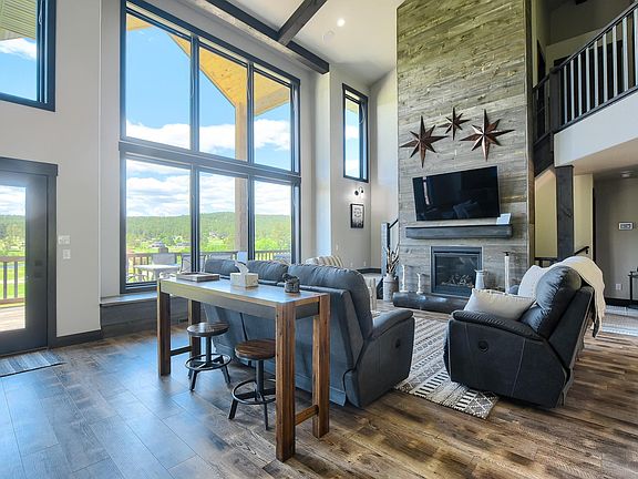 For more information, please contact listing agents Heath Gran 605-209-2052 or Michael Warwick 605-641-2569 with Great Peaks Realty. Take a look at this custom-built getaway consisting of 5 bedrooms, 3.5 bathrooms, expansive covered deck nestled in the scenic Apple Springs surrounded by the Boulder Canyon Country Club. Inside you will marvel at the floor-to-ceiling window schedule overlooking the breathtaking views, rustic gas log fireplace in the living room, wood beam accents, luxury vinyl plank wood flooring leads you into the open kitchen featuring a center island with seating, beverage refrigerator, open wood shelving, tiled backsplash, dark stainless steel appliances and dining room walkout to the covered back patio. Master ensuite is located on the main level with sliding glass doors leading you out onto the deck. Upper open loft offers another family room with built-in bunk beds, plus two additional bedrooms and full bathroom. Both bedrooms feature unique built-in upper lofts. The basement offers a spacious walkout family room, two more bedrooms (one with built-in bunk beds) and full bathroom. This home is stunning inside & out and is ready for you to call home, or utilize as a vacation rental investment!
