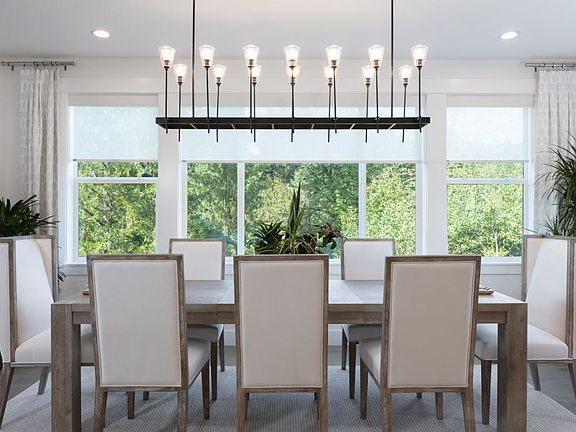 Deluxe appointments and style. The Mt. Bachelor's inviting covered entry opens to the charming foyer and a stunning view of the spacious great room and casual dining beyond. The well-appointed kitchen is highlighted by a unique center island with breakfast bar, ample counter and cabinet space, and convenient pantry. The grand primary bedroom suite is enhanced by a large walk-in closet and deluxe primary bath with dual-sink vanity, large soaking tub, luxe glass-enclosed shower and private water closet. Central to an enormous loft with covered balcony access are the well-proportioned secondary bedrooms, each featuring a sizable closet, and shared full hall bath. Additional highlights include a versatile first floor bedroom with roomy closet, desirable wine room off the great room, convenient full hall bath off the foyer, and centrally located second floor laundry.