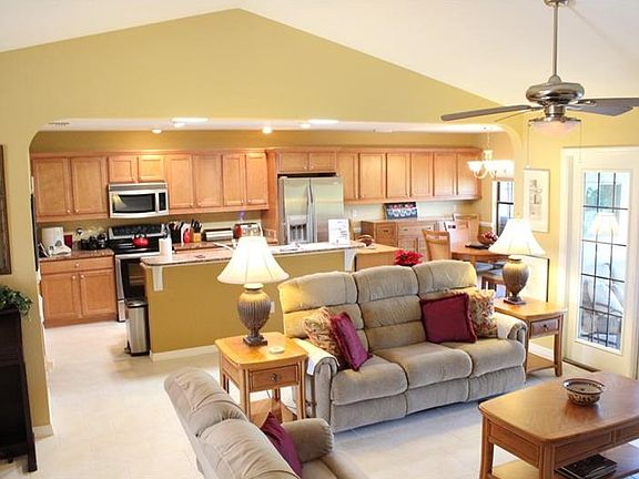 Located in Beautiful Stonecrest, a 55+ Gated Golf Community ONLY 3 miles North of Spanish Springs in The Villages, Florida! Well maintained THREE Bedroom/ TWO Bath home with MANY Upgrades to include; GRANITE Counter Tops, Additional Cabinets in Kitchen and Laundry Room, Solar Tubes, TILE throughout Living area and all Wet areas, Carpet in Bedrooms, Jacuzzi Tub in Second Bathroom, French Doors across back of Living room leading out to Lanai and Birdcage! Many other custom changes in home! You'll LOVE the Spacious Backyard and PRIVACY! Make sure you put this one on your list to see! Some furnishings available for separate purchase.