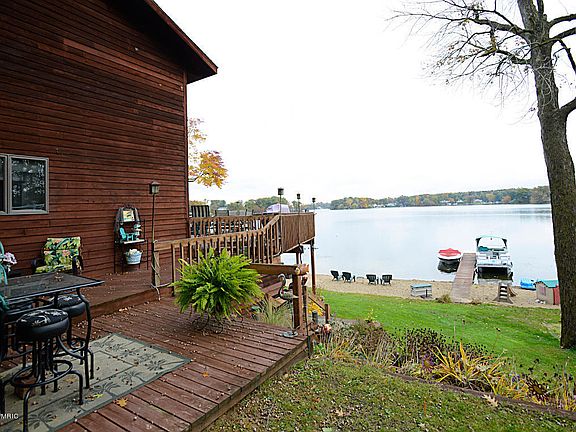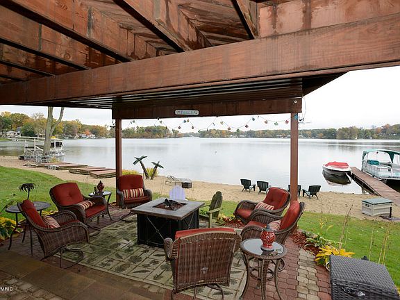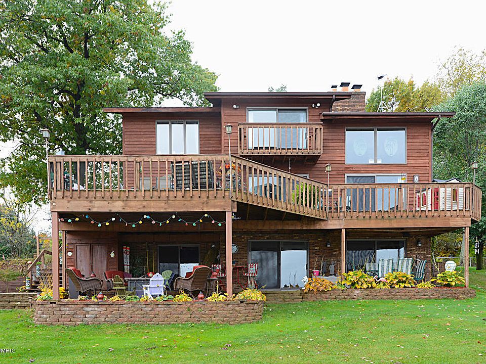 Very desirable cedar 2 story walk out on Southgate. This home has everything you could ever want & more. One of the best sandy beaches on Pine Lake. Gently sloping lot with landscaping blocks & perennials. Beautiful brick patio's on the lower walk out level, huge decks on upper level. This home is perfect for all your entertaining. The 3 plus car garage is drywalled, separate furnace, sink & cabinets, floor drain and 3 custom garage doors. Walk through the beautiful glass etched pine tree double doors to the foyer that has an open staircase to bout upper and lower level, living room with gal log/brick fireplace. Upper balcony which expands to upper level. Formal dinning room with large sliders & great views of the lake. Kitchen is a chefs dream, custom cherry cabinets, granite counter tops