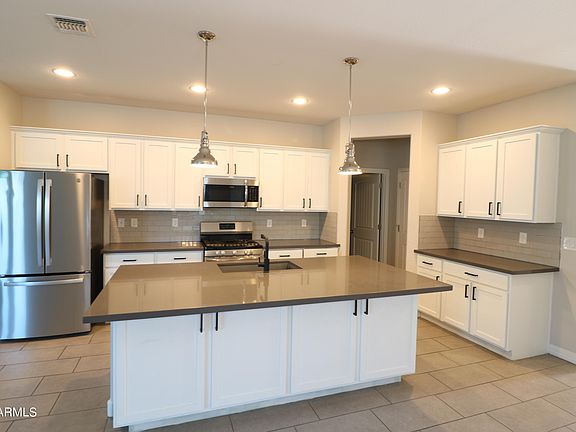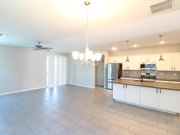 Located in the gated Coldwater Ranch community in Peoria, this move-in ready, 3 bedroom, 2 bath home features an open kitchen with upgraded counter tops, white shaker cabinets and tile back splash, kitchen island and breakfast bar, living room with dining area, double sinks in the primary bathroom, walk in closet in the primary bedroom, two-tone interior paint, upgraded tile flooring, indoor laundry, 2 car garage, desirable N/S exposure, low maintenance landscaping, & more!