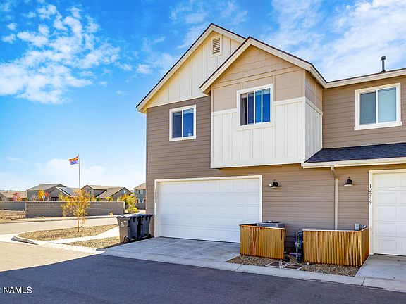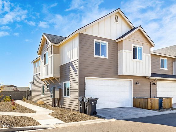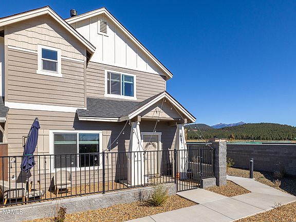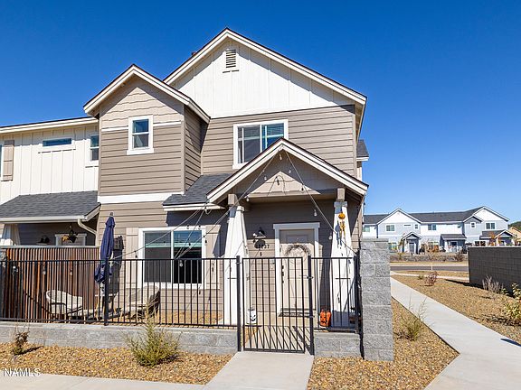 Immaculate 3 bedroom, 2.5 bath end unit townhouse in a brand new community in Bellemont. This home boasts a gated front porch, gas fireplaces in the living room and primary suite, separate living areas on each floor, a formal dining space located off the kitchen, and beautiful natural light throughout. Luxury vinyl plank flooring throughout the main floor. The kitchen includes stainless steel appliances, a breakfast bar and walk in pantry. Upstairs is a separate loft/living area with all three bedrooms and 2 full baths. In addition to the gas fireplace, the primary bedroom has a full walk-in closet as well as a spacious en suite bathroom. Peak views from multiple bedrooms! An oversized garage for cars and storage.