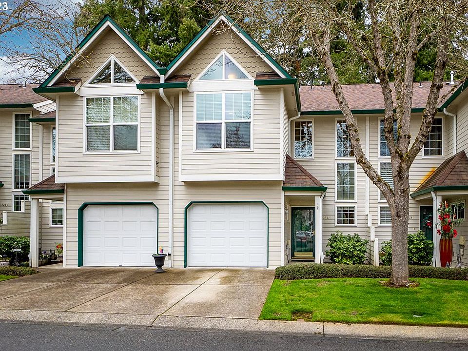 Adorable townhome with beautiful updates! New kitchen cabinets, tile and quartz countertops. Remodeled bathrooms, and designer laminate flooring on the main level. Open concept in the main living area, vaulted ceilings with large windows upstairs. Open "flex" room/loft on the upper floor. Fantastic quiet location, yet easy access to public transit and Hwy 217.