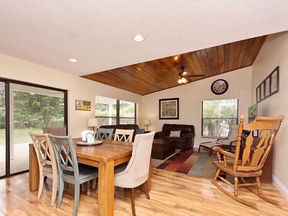 Light & Bright 4 bedroom 2 1/2 bath is nicely updated! Kitchen & Baths have been updated. Kitchen has recessed lighting, Butcher Block counters w/ extended bar seating, Wood cabinets, Stainless Steel appliances & a pass thru window to the patio. The patio was recently extended w/ 748 sq feet of pavers! Patio is partially covered & accessible thru sliders from the Living & Family rooms. Home sits on a cul-de-sac w/ .27 acres & a fenced in yard (plenty of room for a pool). Interior finishing touches include Manufactured Wood flooring in master bedroom & all living areas, high baseboards, pantry closet, Knock down ceiling & wood plank ceiling in Living Room. Exterior features gutters, Hurricane panel protection, new sprinkler system panel & side entry door to the garage.