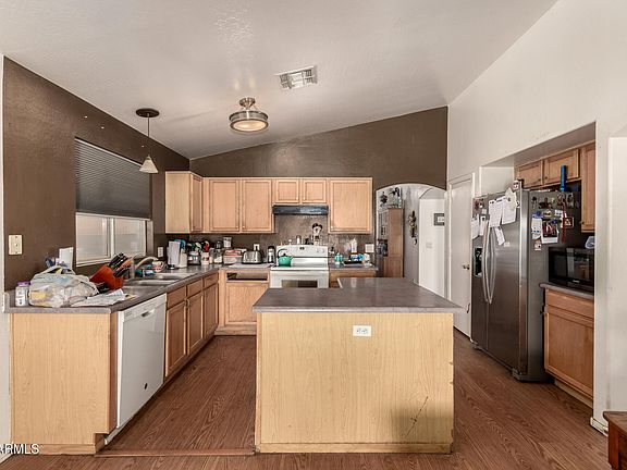 OPEN FLOOR PLAN with vaulted ceilings, tile flooring,SPACIOUS KITCHEN complete with a CENTER ISLAND perfect for Entertaining. Conveniently located near schools, shopping, & everyday amenities. The primary bathroom features plenty of under sink storage waiting for your home organization needs. Take it easy in the large back yard. The covered sitting area makes it great for BBQs!