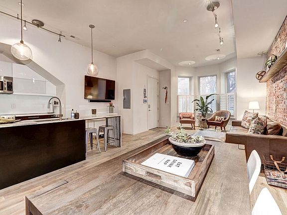 This updated one bedroom plus den (the photo shows a bed in the den; it is the room with the wallpaper) is right in the heart of downtown DC. Unique brick accent wall, plenty of natural light from front bay window. Hardwood floors throughout, abundant cabinet space and long kitchen island. Rear, covered deck off bedroom. The 11th St condominium consists of four one-of-a-kind units with a luxury, loft-inspired design. A product of Brook Rose Development, this is no ordinary rental; it offers an exciting boutique living space, unique in design detail, layout and functionality. Bypass the large high-rise living experience and enjoy the privacy and peacefulness offered with this small townhome condo conversion. Walk to Logan Circle, Chinatown, 14th Street, Downtown and multiple Metros. Restaurants, shopping and shops galore, all at your fingertips. DC living the way it should be! One bedroom + den. Tenant pays for some utilities such as electricity, wifi/cable. No smoking. $30 application fee. $100 maintenance deductible. $500 refundable pet deposit.