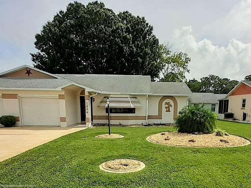 Half duplex home located in a highly sought after retirement community or rental property. The low HOA provide a quiet and safe community with a pool, clubhouse, garbage, and lawn maintenance. This home is prime location for these amenities with a large rear patio for outdoor dining, grilling or evening visits with neighbors. Brand new A/C unit and recent painting in many areas. New bathroom sink faucets and dishwasher were recently installed. Home has been recently cleaned. New Garage screen door. All appliances and some furniture is included.
