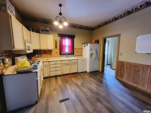 Charming 2 bed 1 bathroom home situated on a corner lot on Pekin's north side. HUGE garage great for mechanics and hobbyists. The high ceilings and open layout of the dining and living rooms make this home feel much larger.