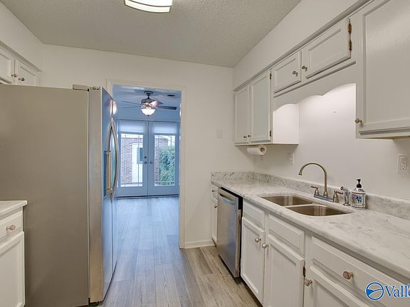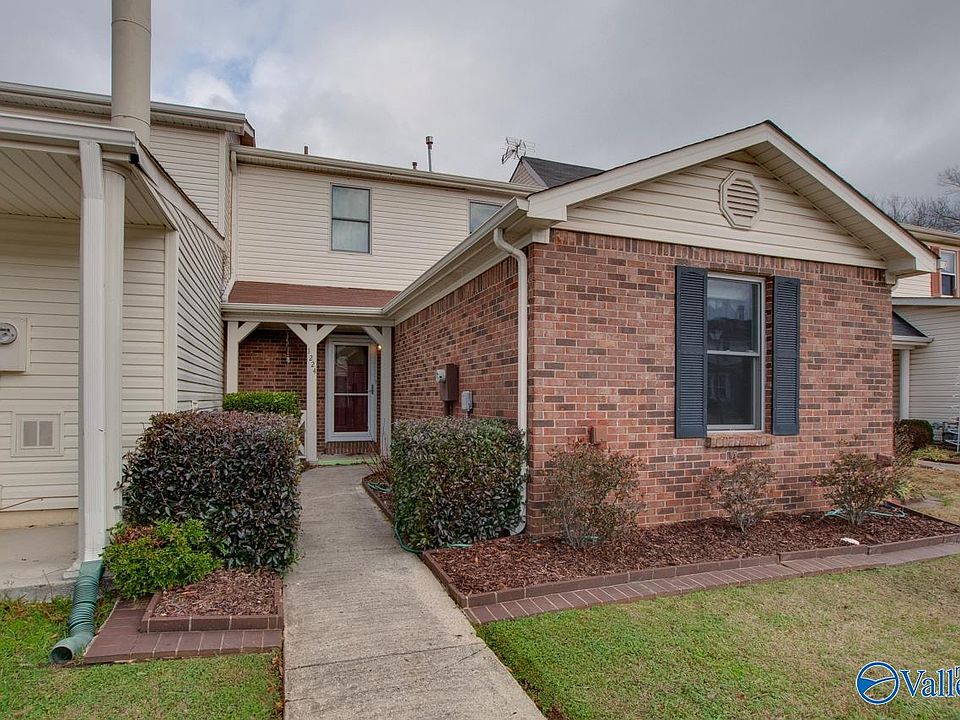 New Flooring & New Wood Steps! 3 Bedroom, 2 Full Bath, Townhouse in SE Huntsville. There's no HOA fees which is a huge savings. Large Master Bedroom with Shower on the first floor. Second floor offers 2 bedrooms with a full bath. Tons of closet space provide great storage along with a spacious detached two-car garage with alley entrance. Convenient to shopping across the street making this a prime location. Close to Parks/trails too. Private courtyard for your alfresco dining. Updates include Gutter guards, Graber pleated window shades, marble hearth, new Pella Doors/Windows. New Water Heater '21 & new HVAC '22, all matching LG newer appliances.