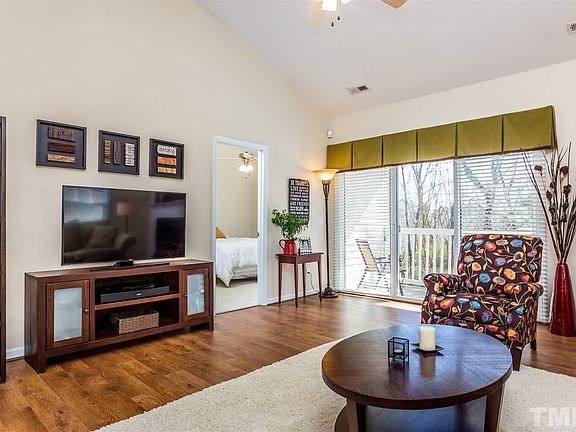 Ready now! Great location! Only 5 miles to RTP and I-40! Immaculate 2nd floor, end unit condo with all the updates. Bright open floor plan with lots of light, laminate wood floors, vaulted ceilings and large private balcony. Gourmet kitchen with granite countertops and tile backsplash. Refrigerator, washer and dryer included. Master with his and hers closets. HOA fee includes: water, sewer, trash, cable, pool! Proximity to Morrisville Park is perfect for all of your outdoor activities!