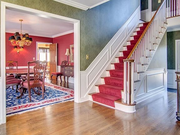 Beautiful Franz Built 4 bedroom 4 Full Bathrooms over 3700 Sq. Ft with additional 600 Sq. Feet in the Finished Lower Level - Circular Drive brings you through Impressive front to back foyer, complete with gleaming Wood Flooring throughout. Spacious formal dining room with floor to ceiling windows, generous living room with Fireplace and tons of natural light. Spacious Kitchen incudes beamed ceiling w/ cherry cabinets, granite countertops, island, eating area, desk. Handsome Family room with raised paneling, built ins, fireplace, large French doors open to back patio with fire pit. convenient laundry room/mud room complete the first floor. Owner's suite recent renovation with vaulted ceiling and skylight, stunning bathroom - separate walk in shower, double sink vanity, and offers wonderful closet space. 3 extra-large bedrooms, 2 full baths on the 2nd floor. Huge finished lower level with full bath. Excellent condition