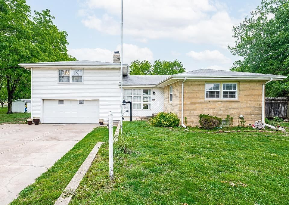 Dont miss this opportunity for small town living in Belle Plain, KS! You will love all the space this home offers indoors and out. 1,668 sq ft on the upper level with 3 large bedrooms and two full baths. Large kitchen and dining combo. Formal dining and large living room for growing family. Basement features family room with fireplace, two large bonus room, laundry and 1/2 bath. Basement access through the garage. You will love the outdoor space and the endless opportunities with the 2 acres and the 20x24 detached garage. Priced to sell! Bring your buyers!