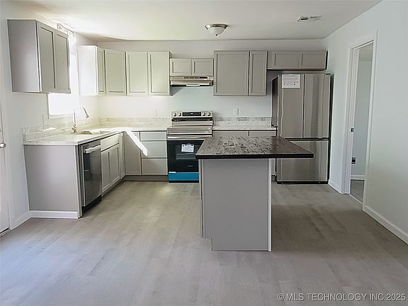 Beautiful Broadway Bungalow! If you've been looking for an amazing property in Cushing, you just found it! 2 Bedroom, 1 Full Bath Home on Almost 1/5 Acre. Flexible Floor Plan with so much Natural Lighting. This property has been totally remodeled over the past year! Enter through the main entrance off the lovely, covered porch or through the kitchen. Gorgeous kitchen with plenty of counterspace and a huge island could easily be used as a kitchen/dining/living room combo. Inside utility room offers enough space for a work station. Absolutely stunning full bath with cultured marble countertops, fully tiled bath/shower area, sliding glass doors, marble backsplash, and frameless bathroom wall mirror with lighting color options and defogger. Large primary bedroom with sitting area. Second bedroom also offers enough space for large furniture or bunkbeds. Living Room could be used for entertaining or converted into a third bedroom/office/gaming room with outside access. Huge yard with mature trees. Large shop/shed with loft is perfect for projects and storage. New Roof, New HVAC, New Landscaping, New Furnace, New Hot Water Tank, New Fixtures, Some New Siding, New Exterior Paint, New Interior Paint, New Vinyl Windows, Some New Doors, New Kitchen Sink, New Kitchen Countertops, New Lighting, New Ceiling Fans, New Flooring, New Bathroom Sink, New Bathroom Mirror, Some New Plumbing, New Bathroom Countertops, Some New Electrical, New Thermostat, New Fascia, New Soffits, New Faucets, New Garbage Disposal, New Stainless Steel Samsung Refrigerator, New Stainless Steel Samsung Dishwasher, New Stainless Steel Samsung Stove, New Stainless Steel Vent-A-Hood, and More.