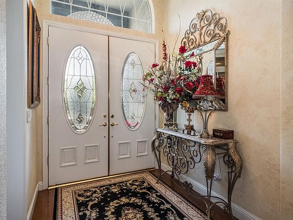 The fabulous home in gated Country Club at the Fort is stunningly beautiful and meticulously kept. Professionally decorated with more than $130,000 in custom upgrades. The 4th bedroom is currently an office, but easy to convert back to a bedroom. Pecan hardwood floors, Berber carpet, designer tile floors, hand painted accents in kitchen granite counter, transom windows, custom light fixtures, glass French doors, crown molding, plantation shutters are featured throughout the home. Inviting kitchen with gas stove, dual ovens, large island & seller offers $2,000 in kitchen upgrades if buyer so desires. Gas fireplaces in living room, family room & master bedroom. Bathrooms feature oversized mirrors and upgraded plumbing fixtures. Master retreat features see thru fireplace with Jacuzzi tub. Hardwired security alarm system built into home. Two bathrooms have access to backyard. Stunning Fornaro landscape, pool/waterfall/spa invite you to outdoor living. See attached list of upgrades.